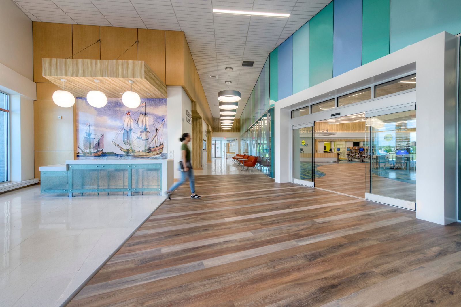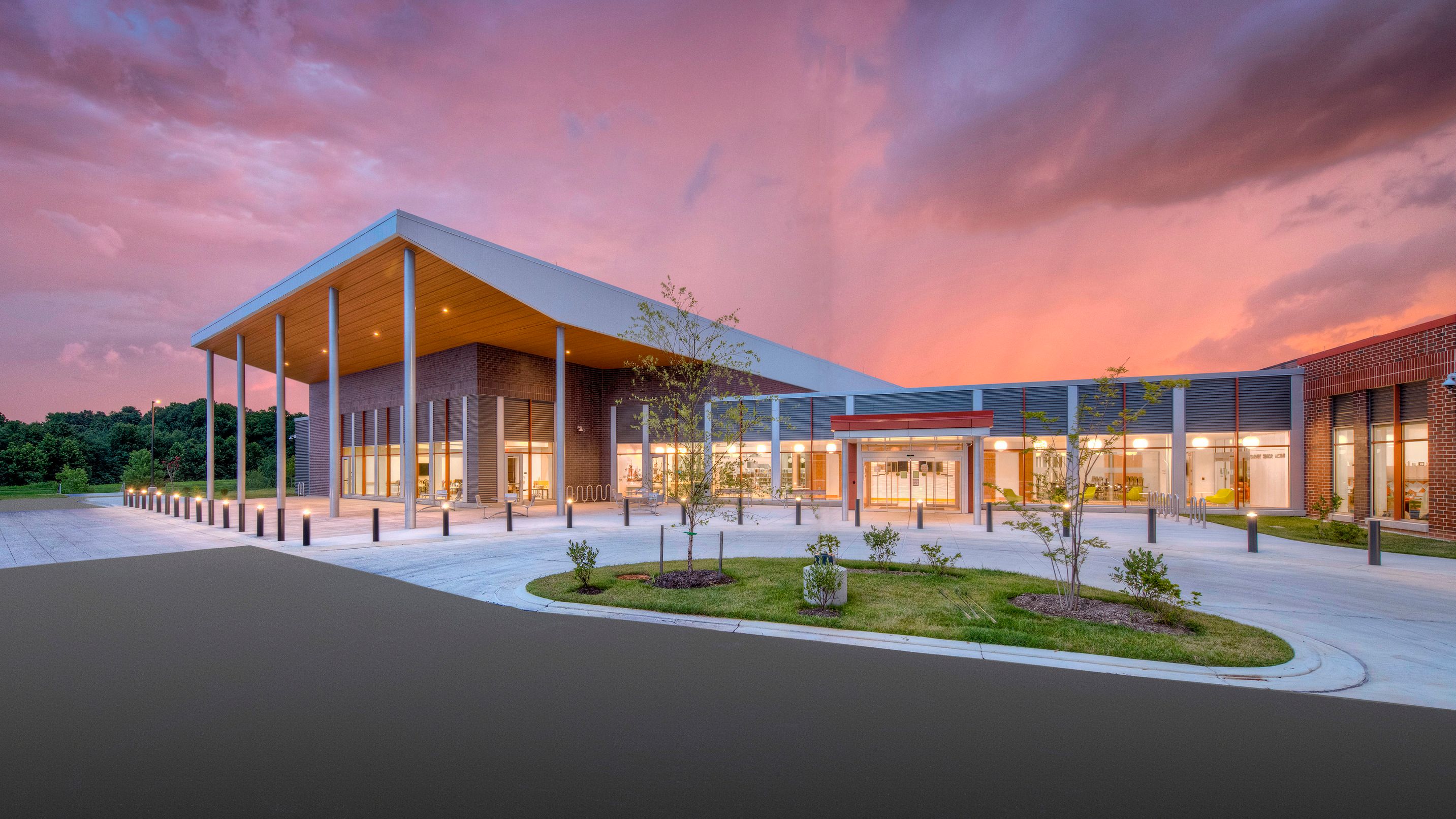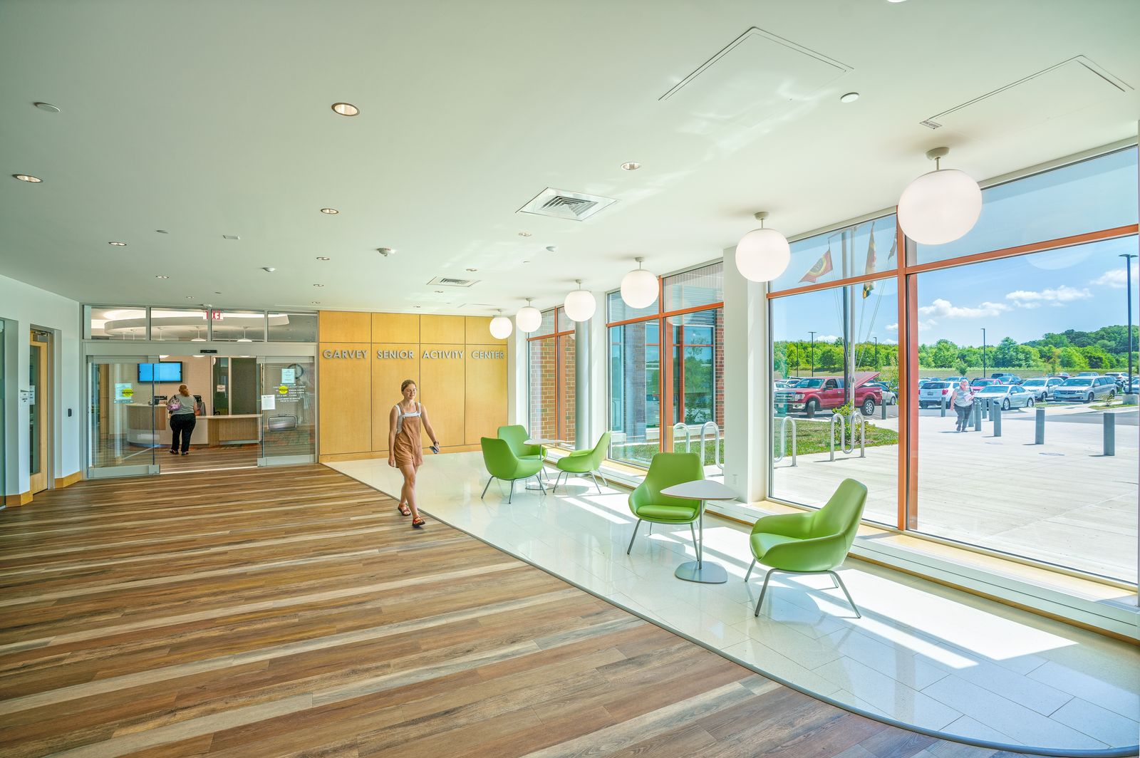 The volume and character of the building is meant to express one integrated facility as a metaphor for the intergenerational vibrant community it serves, and link the facility to the rich history in St. Mary’s County. The interior design and layout were inspired by the colors and textures of the Chesapeake Bay.