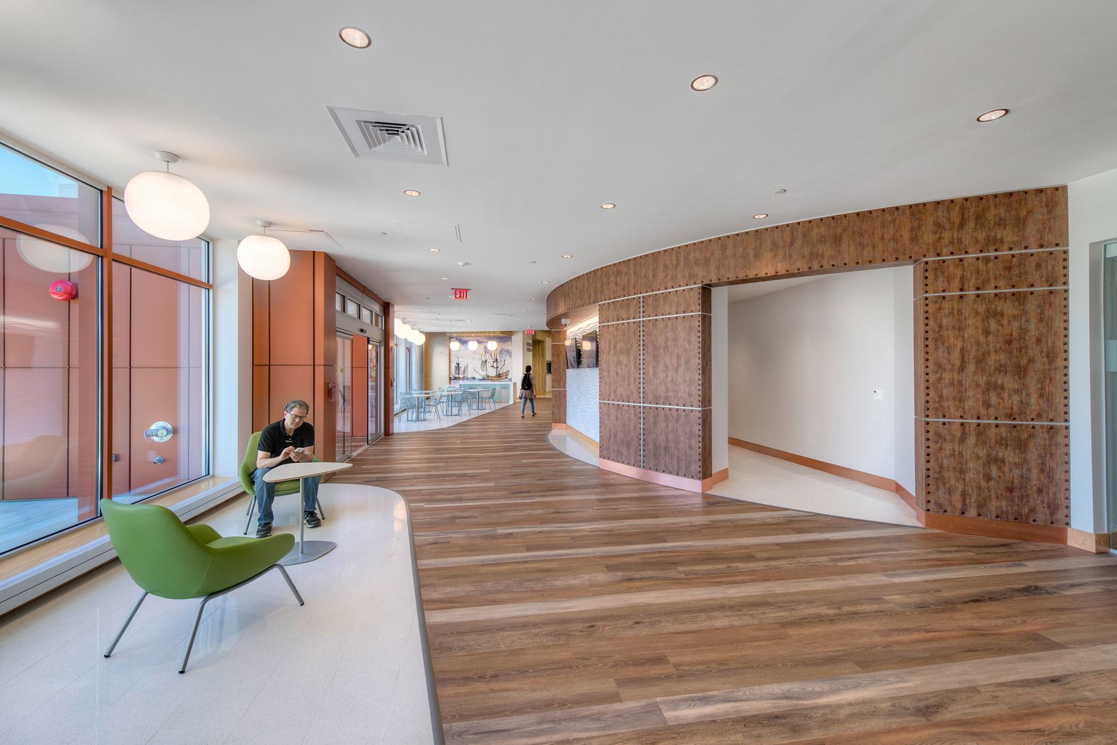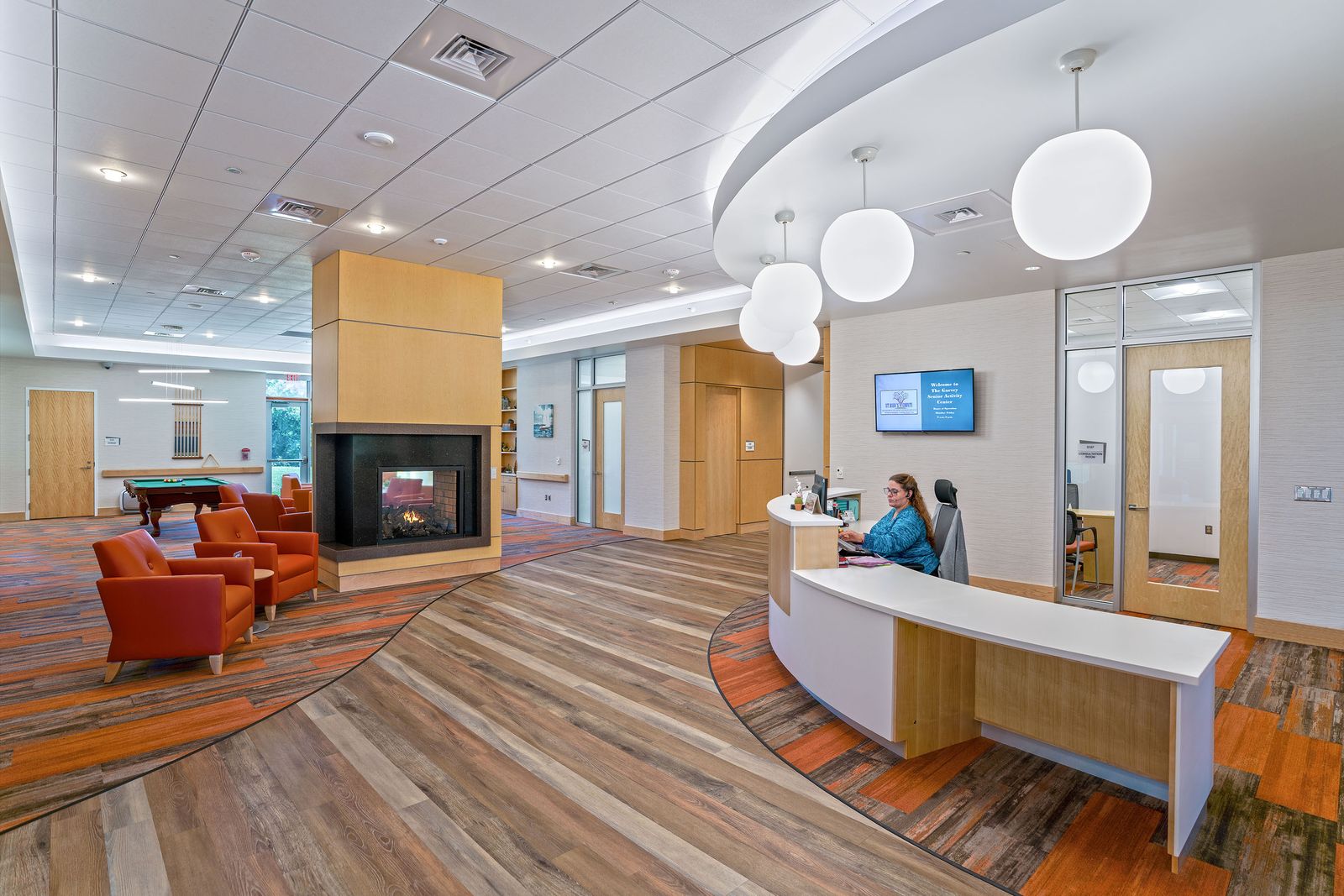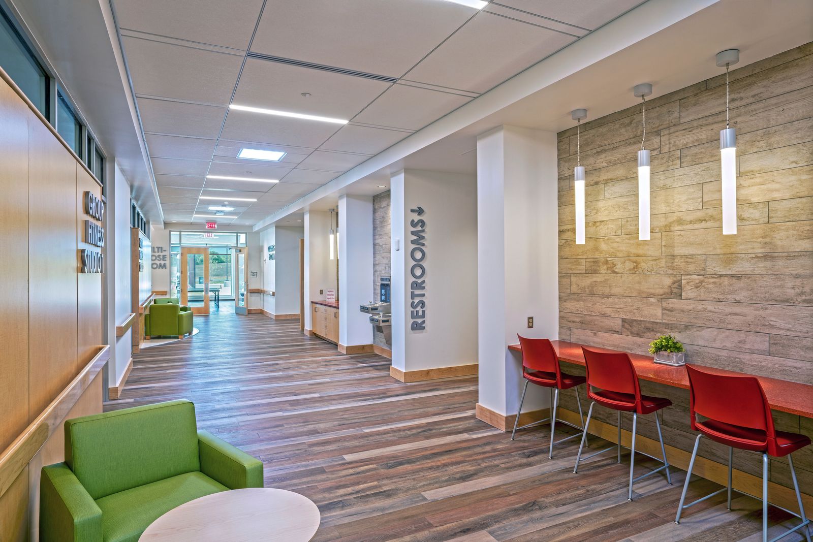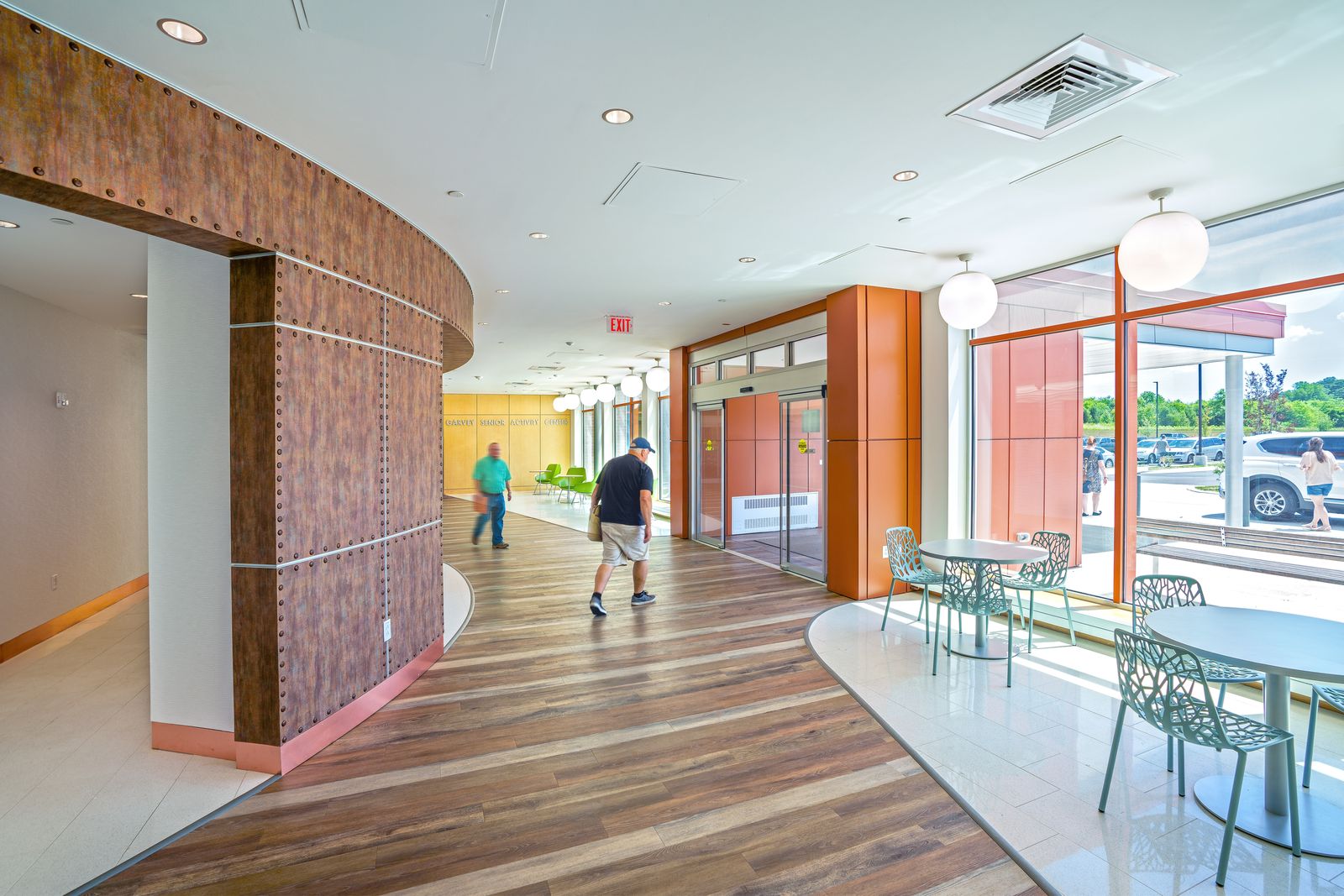 The volume and character of the building is meant to express one integrated facility as a metaphor for the intergenerational vibrant community it serves, and link the facility to the rich history in St. Mary’s County. The interior design and layout were inspired by the colors and textures of the Chesapeake Bay.