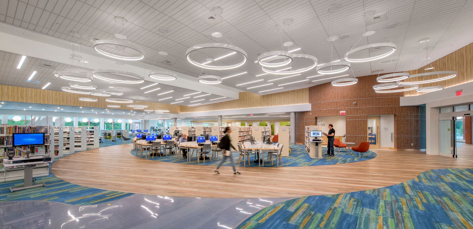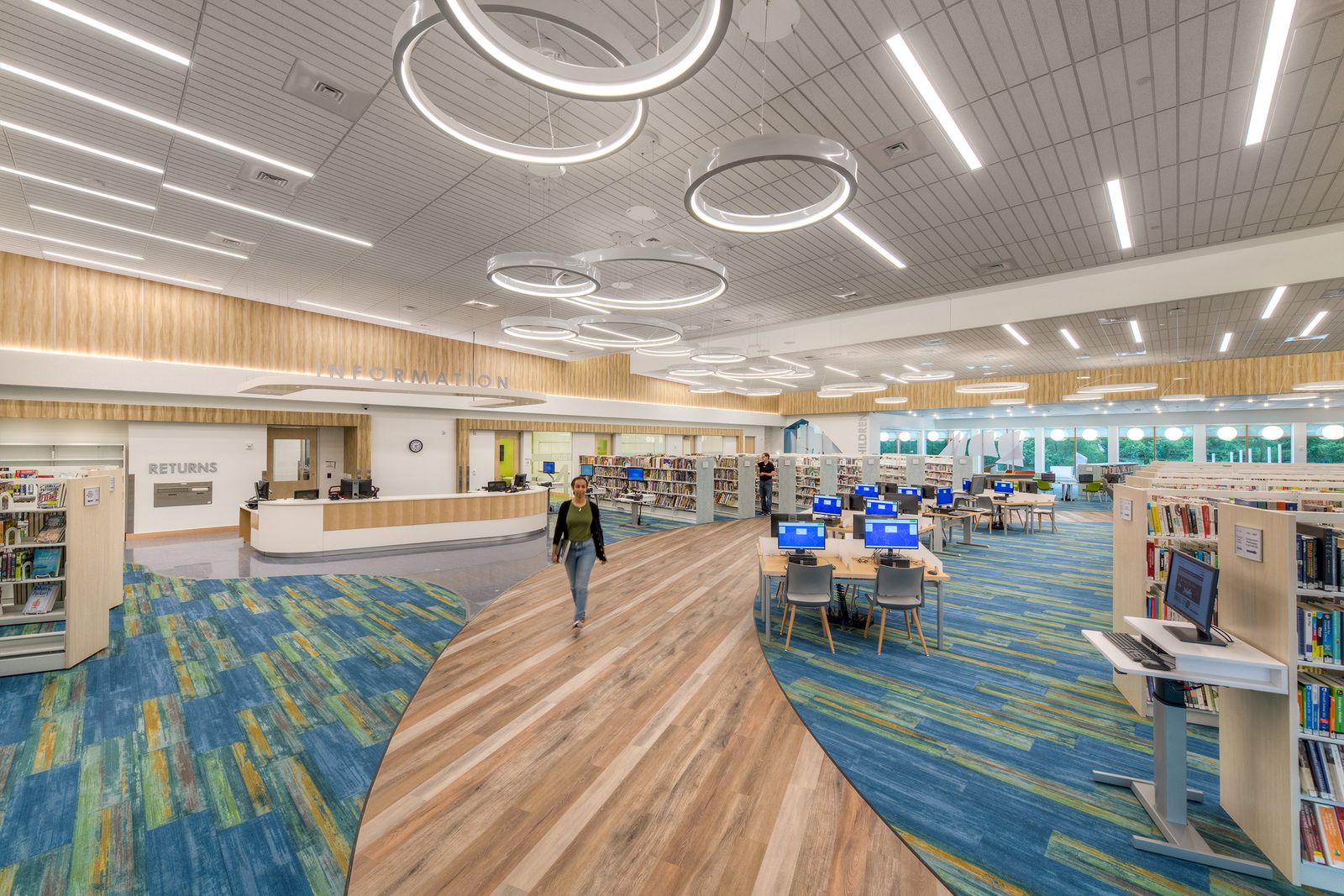 The project co-locates a 23,000 sf public library with a 15,800 sf senior center that share about 6,700 sf in public amenity spaces such as a grand lobby, café area and meeting rooms. The community now benefits from a variety of spaces under one roof that are designed to provide a wide array of information resources, education, recreation and socialization. The main design guiding principles were flexibility and adaptability with the goal of resource sharing between the Library and Senior Activity Center.